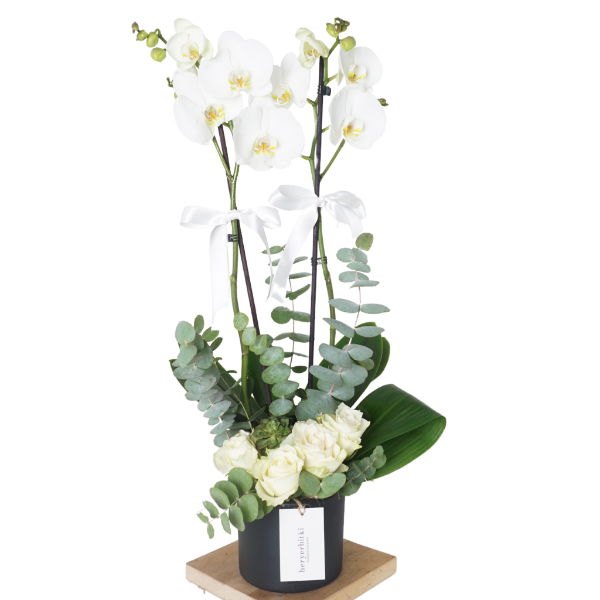 Beyaz Güller ve Orkide Aranjmanı - Heryerbitki